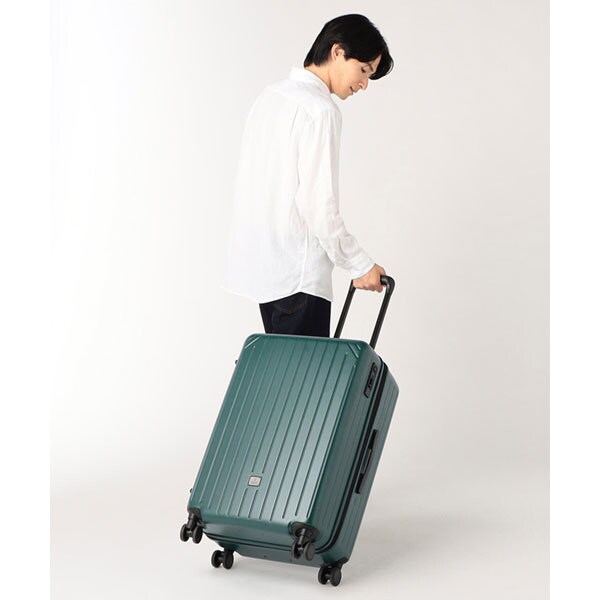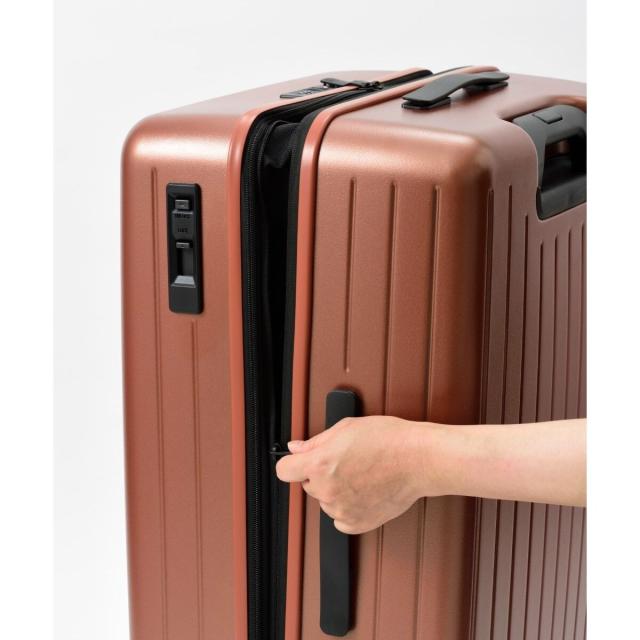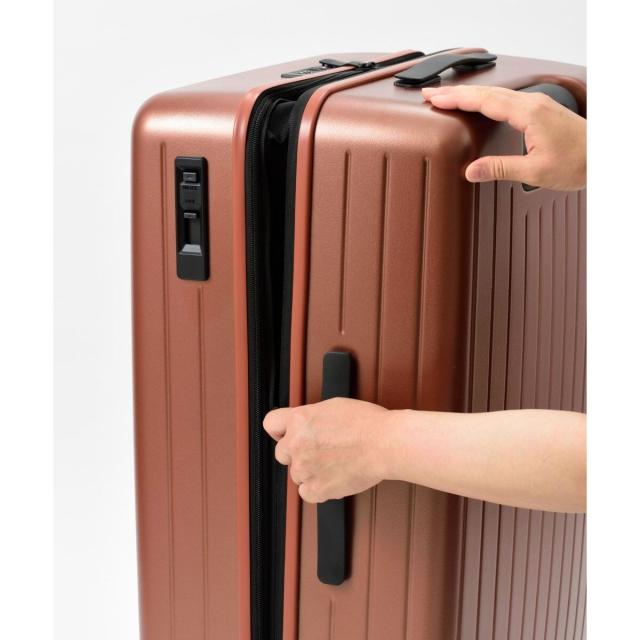 スマートかつシンプルなデザインながら、サイドファスナーを開けることで収納容量を+6L増やせる拡張式キャリーケース。1週間程度の旅行におすすめです。揺れる車内や坂道での不意な走行を防ぐストッパーや諸外国の旅で施錠したまま航空会社に預けることができるTSロックシステムを搭載。旅を楽しく快適にしてくれます。