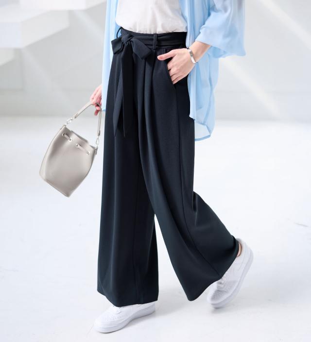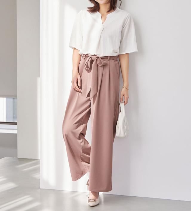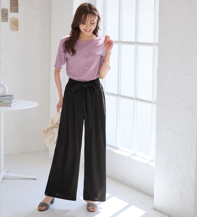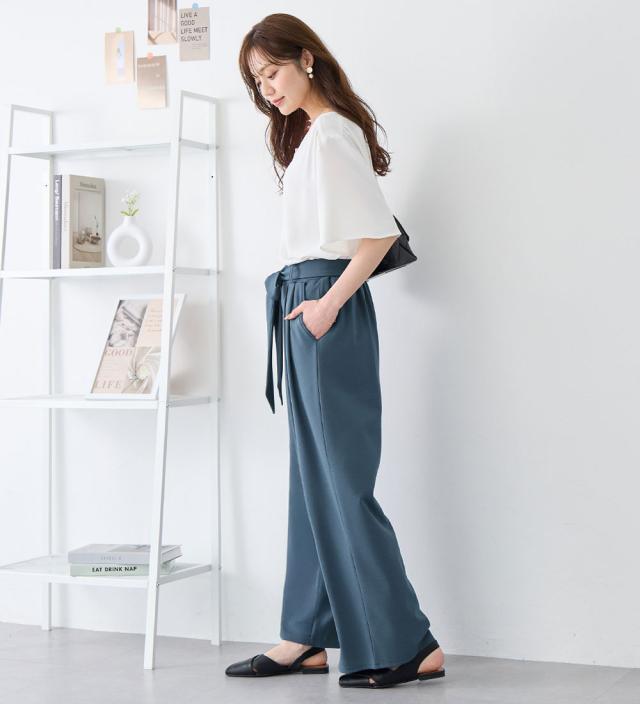 アロッタ(alotta)/【4つの機能付】共布リボン付ワイドパンツ