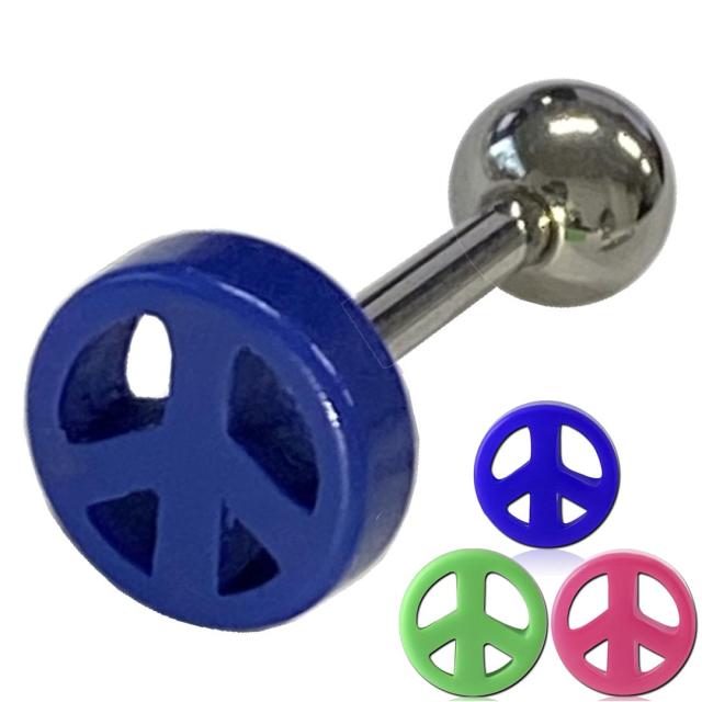 [14G ボディピアス] アクリルピースマーク ストレートバーベル ボディーピアス 14ゲージ 14g 1個販売 メンズ レディース 平和 マーク ロゴ シンボル 丸い 丸型 サージカルステンレス316L 緑色 グリーン 青色 ブルー ピンク色 男性 女性 プレゼント ギフト おしゃれ