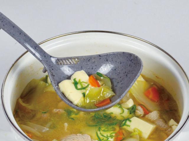調理によく使うお玉に機能を付けて、1本で色々こなす便利なキッチンツールになりました。使いやすさにこだわった形状で、調理がはかどります。