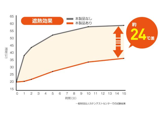 最低でも約24度の遮熱効果があり、「タイル」においては本製品が無い場合と比べて、約28度の効果が出ています。冷房運転中の室外機の負担が軽くなり、節電・省エネ効果が期待できるのが嬉しいポイントです。