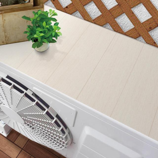 エアコンの室外機用の遮熱シートです。シートを室外機の上につけることで、夏の強い日差しを跳ね返し、天板の温度上昇を抑えます。