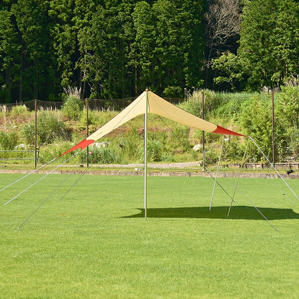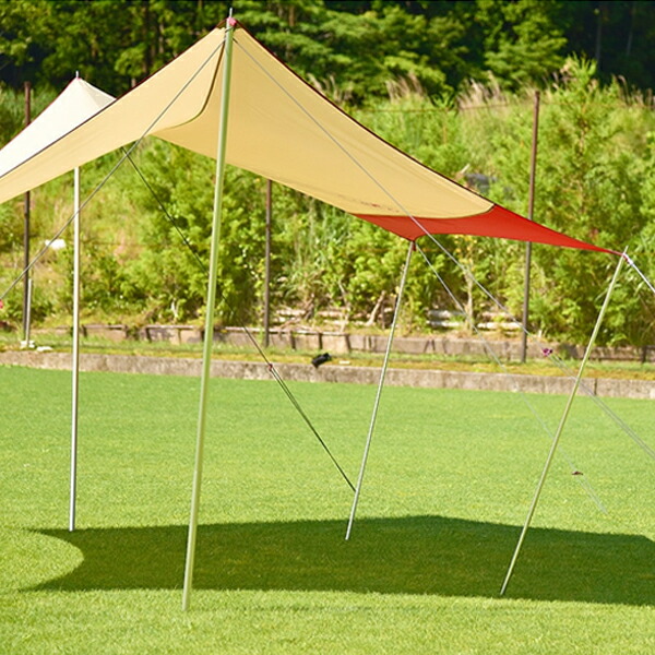 フィールドで映える、カラフルなヘキサタープ 立てやすく、高さ調節が自在なヘキサタープ。2本のポールをメインにし、 その他の角はガイロープ(張り綱)でペグダウンするシンプルな構造。 開放感をたっぷりと味わえるので、ビギナーからベテランキャンパーまで幅広く人気の形です。 〈ご注意ください!〉 ※設営にはポールが別途必要です!ポールはご自身でご用意ください。 | |||||||||
