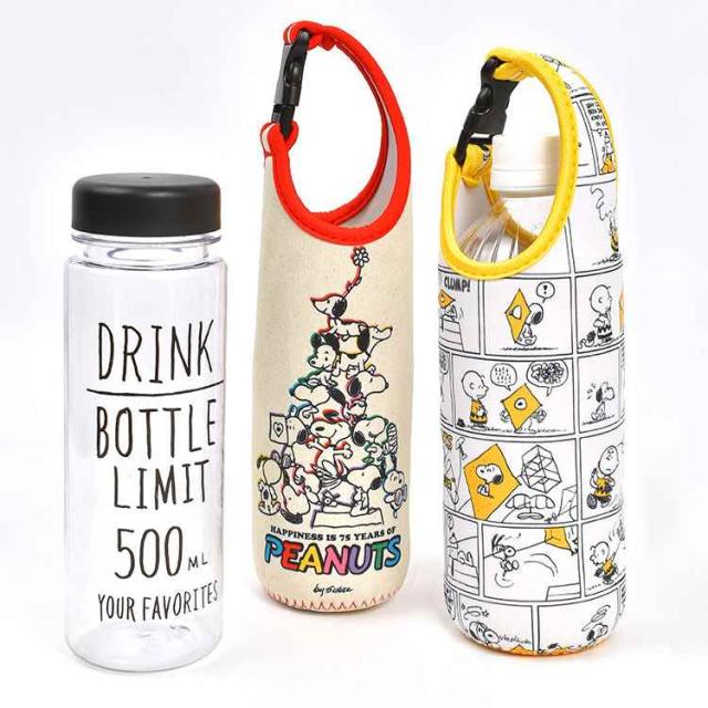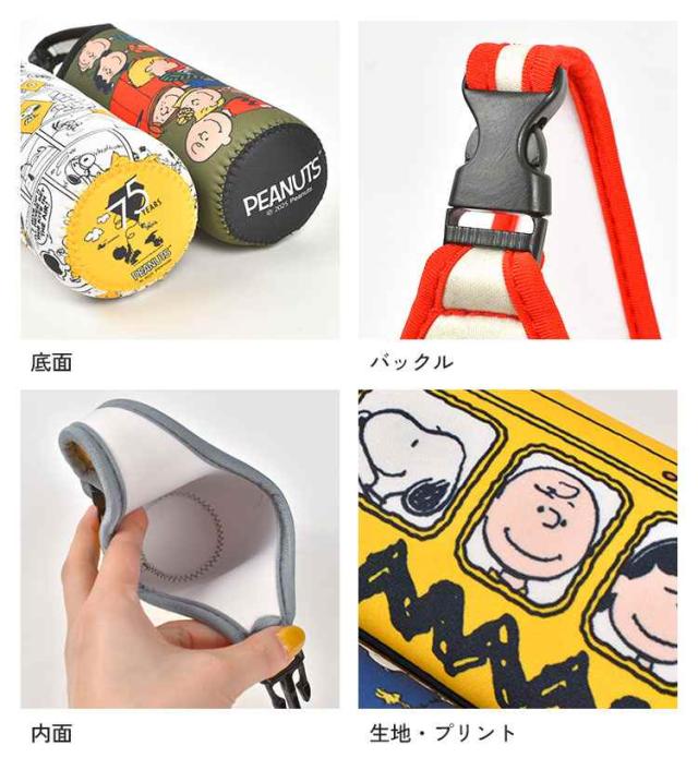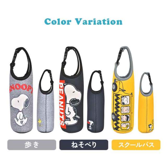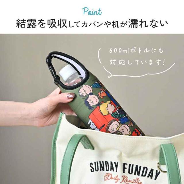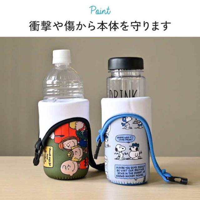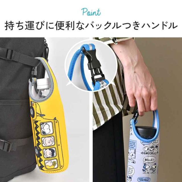 ペットボトルホルダー SNOOPY スヌーピー キャラクター 500mL 600mL ボトルカバー かわいい 水筒カバー ボトルケース 持ち手付き 収納 スリム おしゃれ コンパクト 水滴 つかない 結露吸収 濡れない バックル 伸縮性 女の子 男の子 小学生 中学生 高校生 大人 遠足 運動会