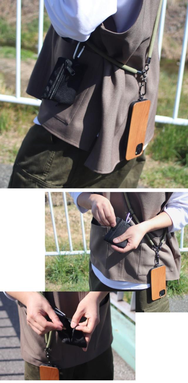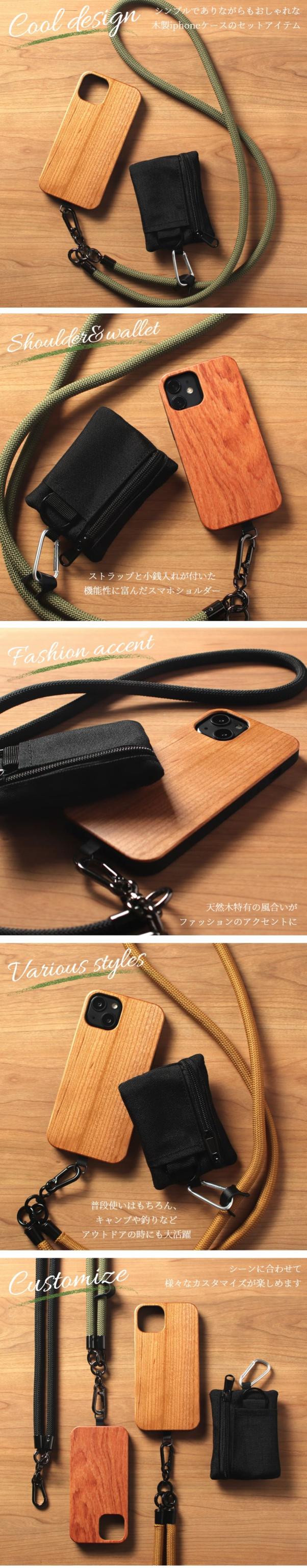 木製iphoneケースとショルダーストラップ・小銭入れが付いたおしゃなセットアイテム