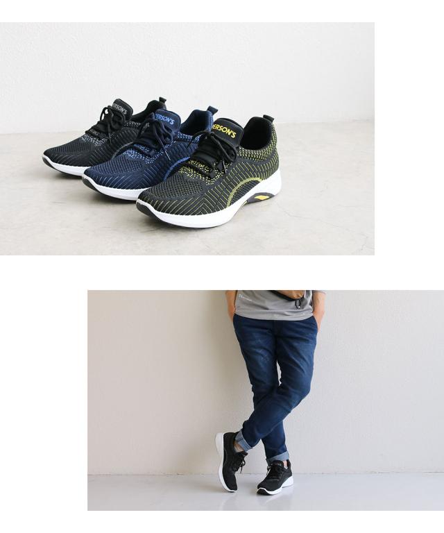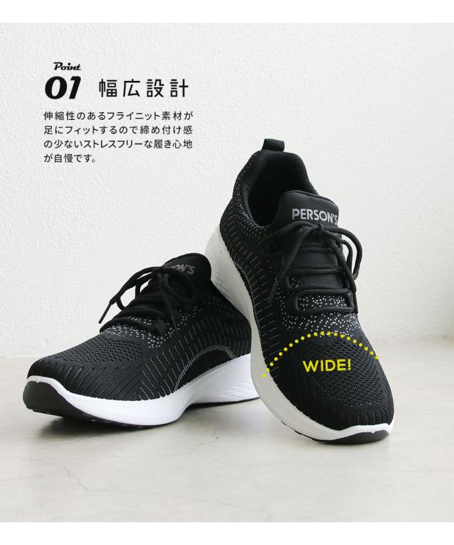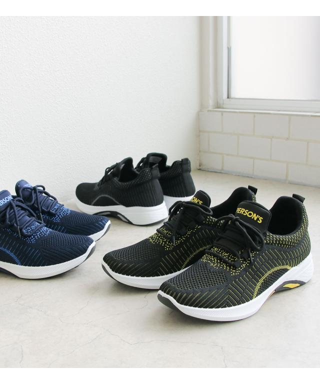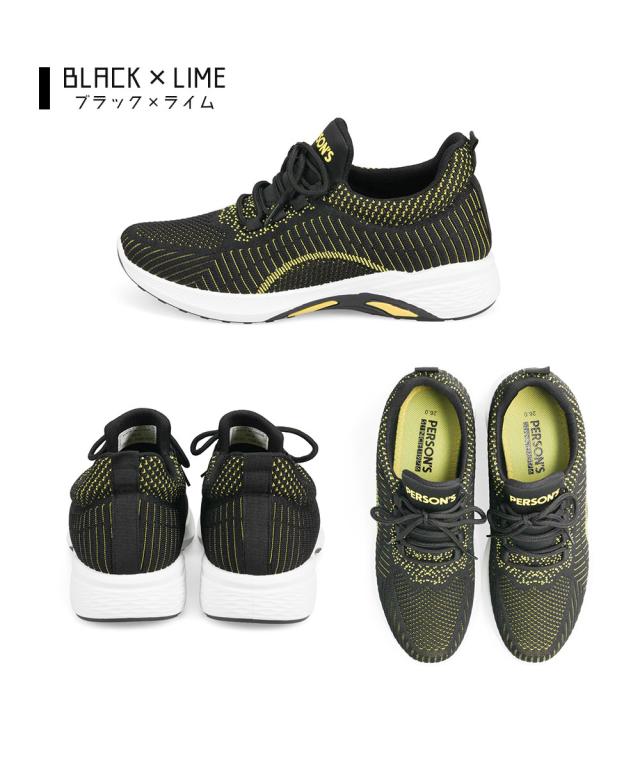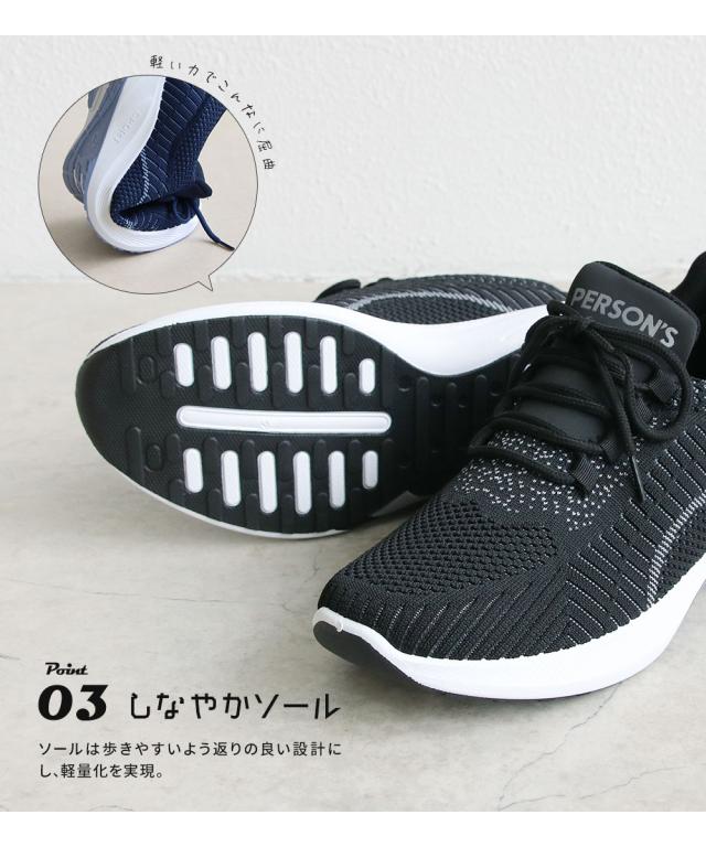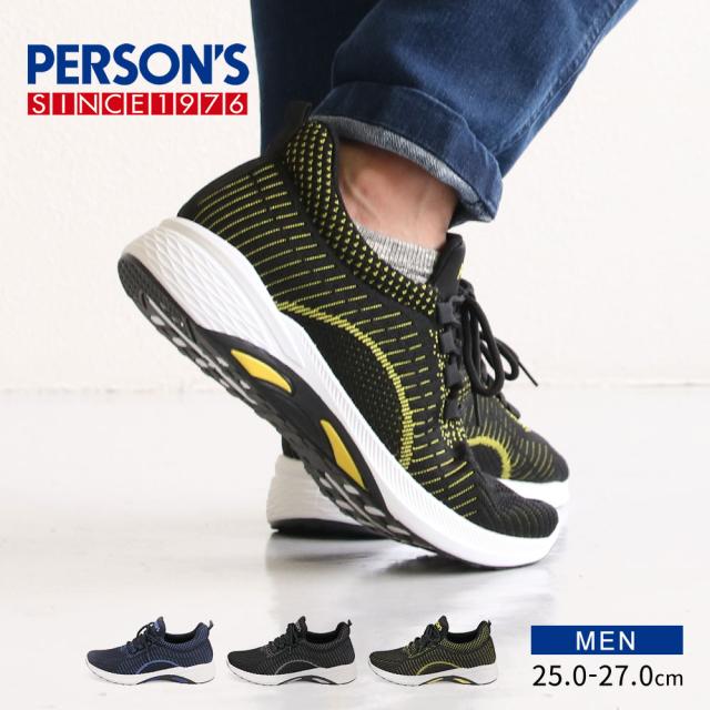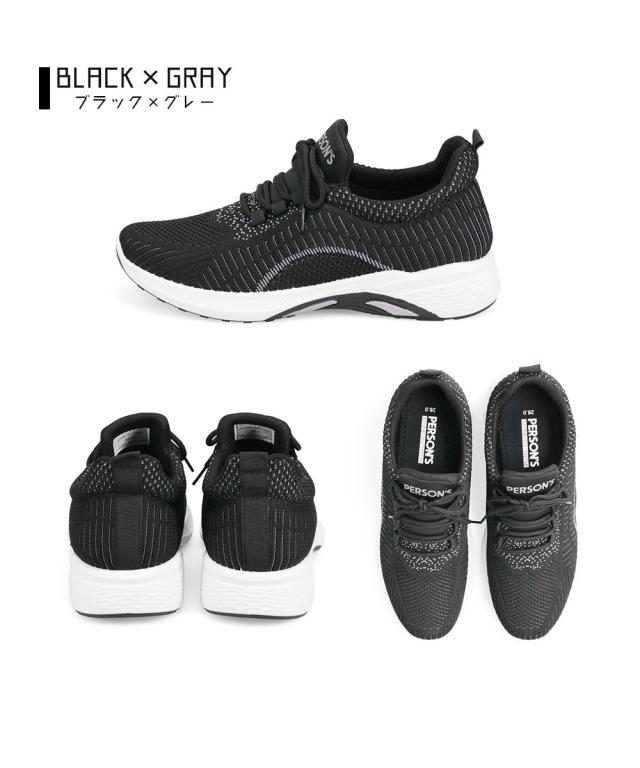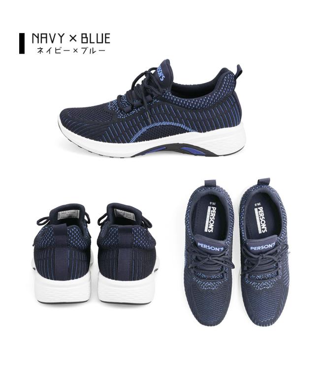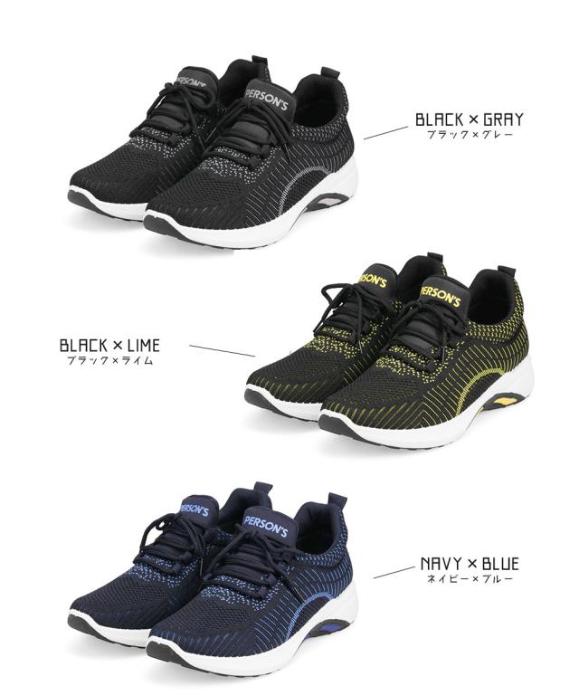 ニットスニーカー メンズ スニーカー 黒 メッシュ ローカット 軽い ジュニア 運動靴 履きやすい 通気性 ウォーキング ジム スポーツ カジュアル フィットネス アッパーニット 靴紐 ローカットスニーカー 低反発 インソール ブラック ネイビー パーソンズ PERSON'S 1812