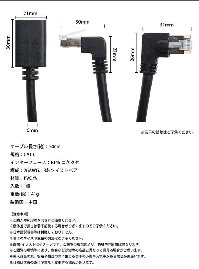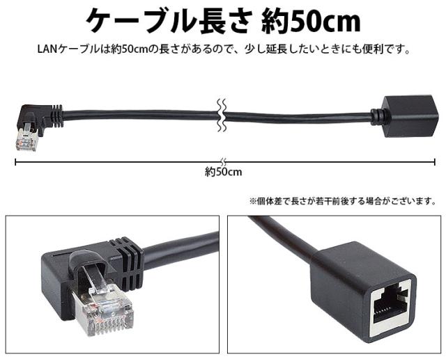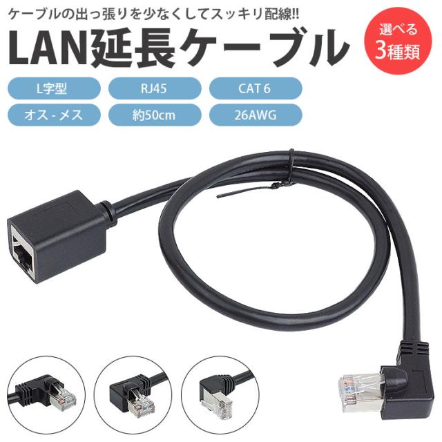 LANケーブル L字型 50cm 延長ケーブル CAT6 オス メス RJ45 26AWG 角度 90度 直角 左向き 右向き 下向き スッキリ配線 PR-LA-CL10【メール便 送料無料】