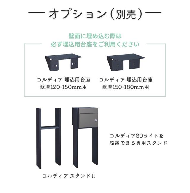 コルディア80ライト | 埋込用台座/壁厚120−150mm用 | 埋込用台座/壁厚150−180mm用 | 専用スタンド |