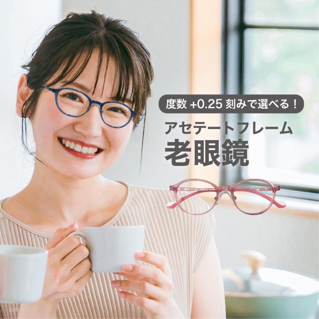 度数+0.25刻みで選べる!老眼鏡 ブルーライトカット シニアグラス おしゃれ レディース メンズ PCメガネ ブルー ピンク 丸 ラウンド 2015