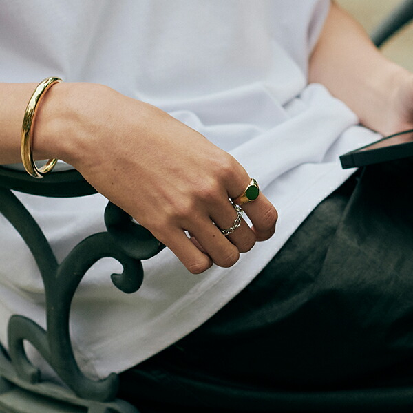 トップの印台は磨き上げ、光を優しく反射させる品のある仕上がりに。
