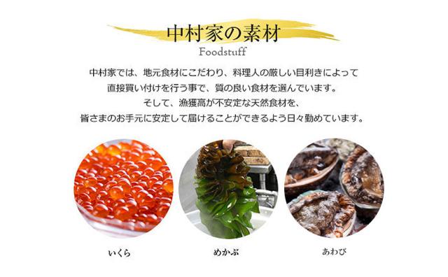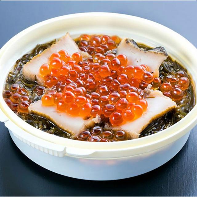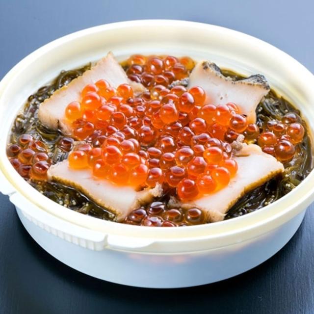 三陸産のめかぶ醤油漬に、柔らかく煮たあわびと濃厚ないくらをトッピング。少人数のご家庭にもぴったりな220gです。