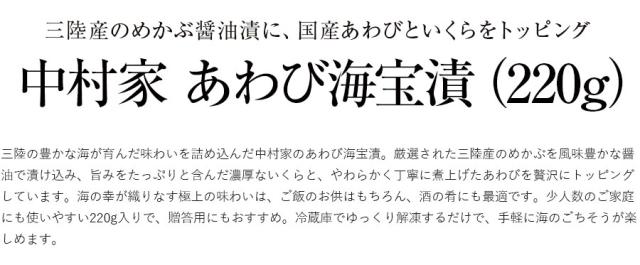≪中村家≫あわび海宝漬(220g) 三陸産 めかぶ アワビ 鮑 いくら イクラ 岩手県 ごはんのお供 おとも 酒の肴 つまみ アテ ご当地グルメ 贈答 贈り物 お中元 お歳暮 御歳暮ギフト