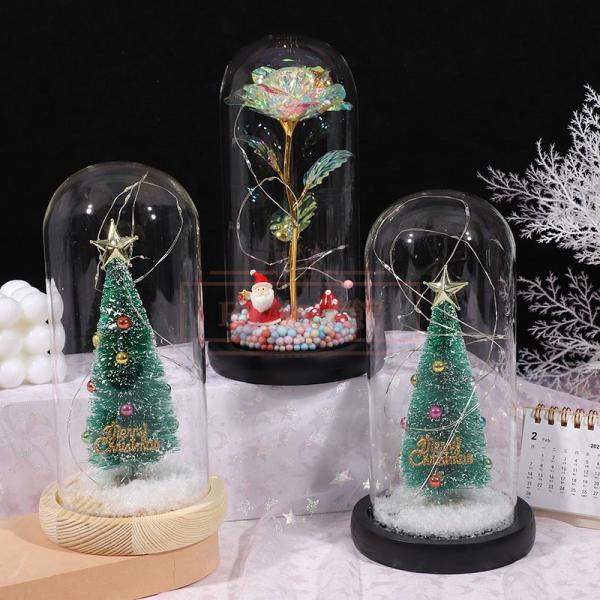 バラ造花LED造花金箔 バラクリスマスツリーガラスカバー ソープフラワー クリスマスプレゼント