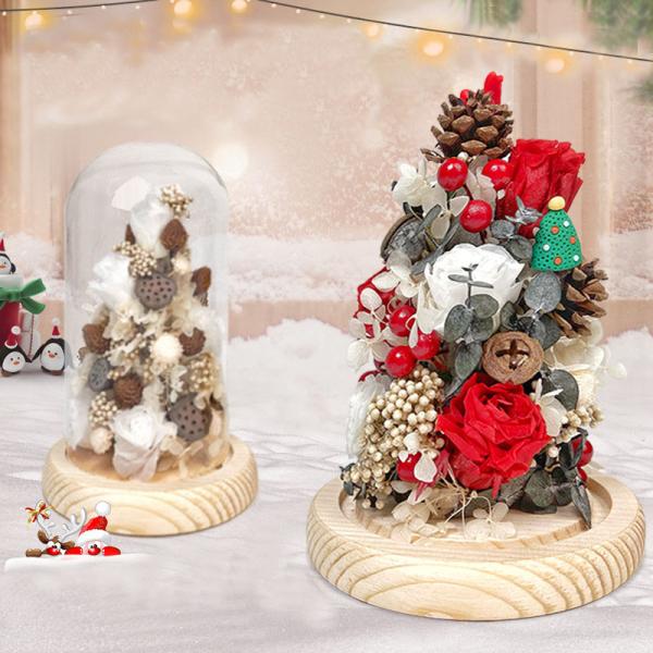 クリスマスツリードームガラスカバーバラプリザーブドフラワープレゼントクリスマスプレゼント