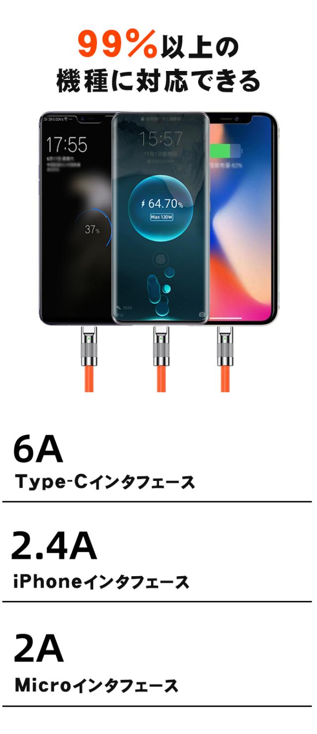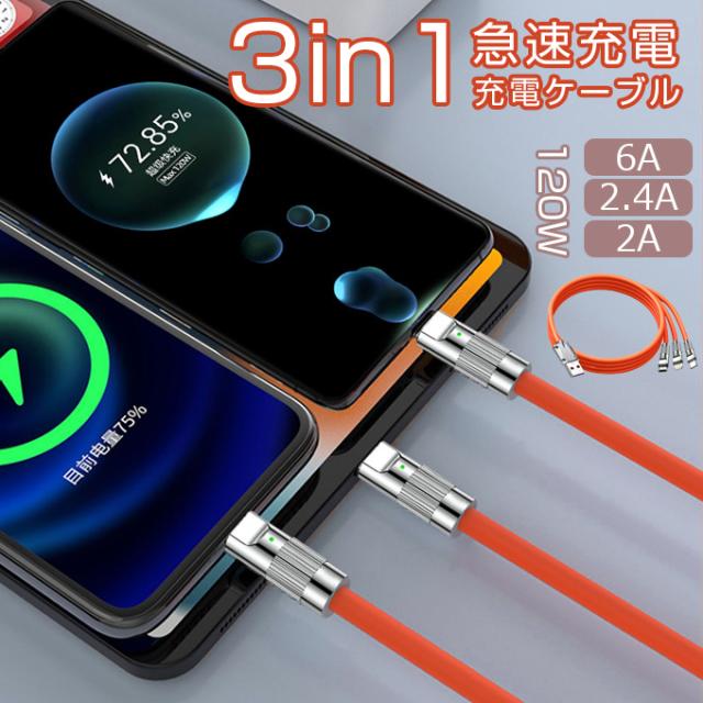 3in1 急速充電ケーブル 120W 6A TypeC iPhone Micro充電ケーブル 超高速充電 タイプC アイフォン 液体シリコン ケーブル 高速データ転送 typec usbケーブル 480Mbps 断線に強い 柔らかくて耐久性があり 結びにくい Galaxy/Huawei/Xiaomi/Android各機種対応 1.2M