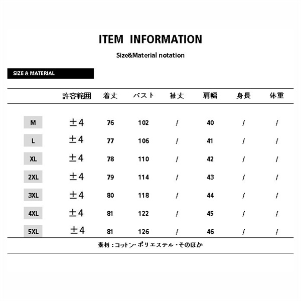 サイズ:/M/L/XL/2XL/3XL