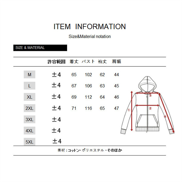 ※基本的に、XL・LL・2Lのサイズはすべて同じサイズです。