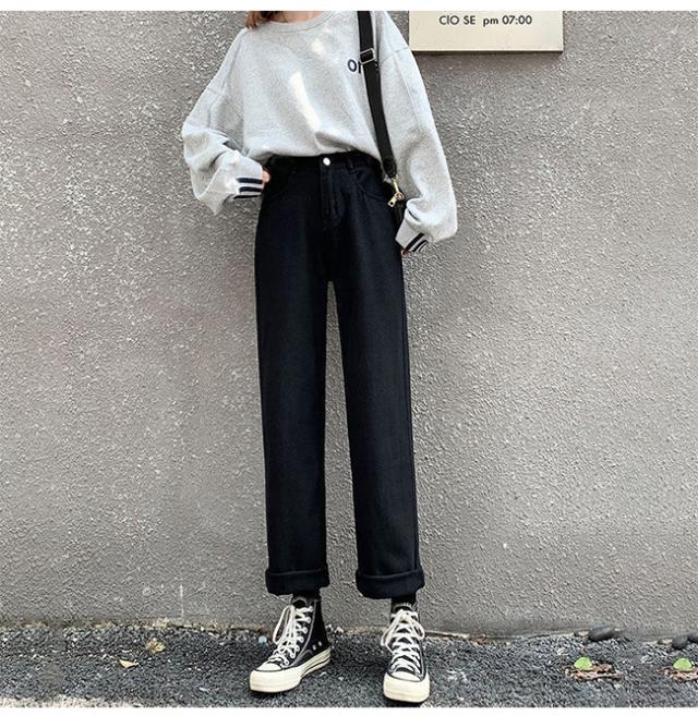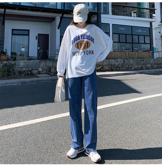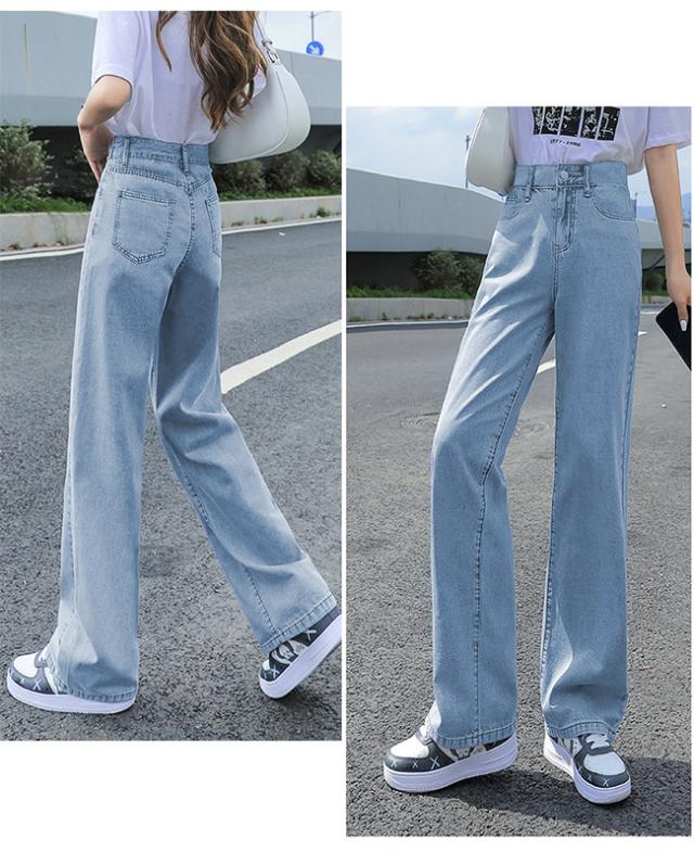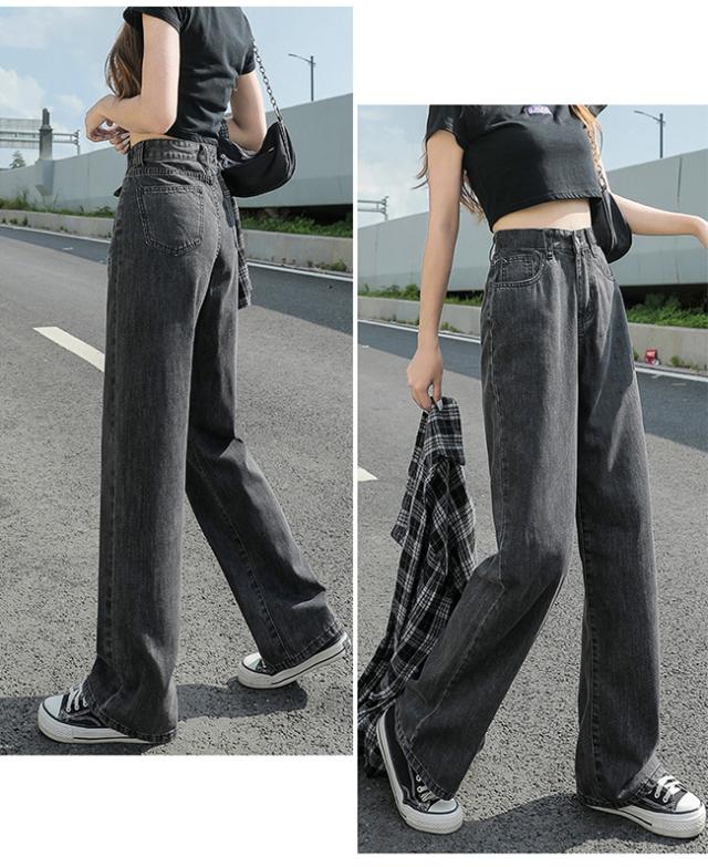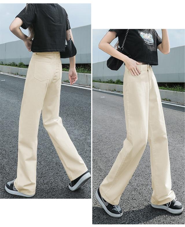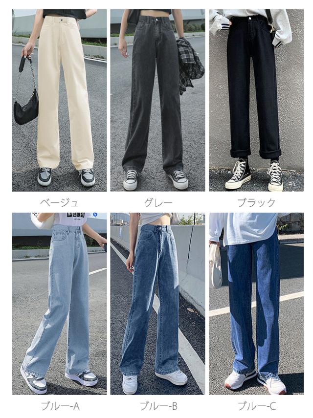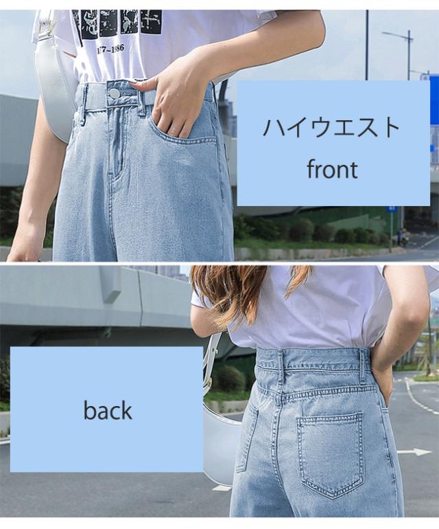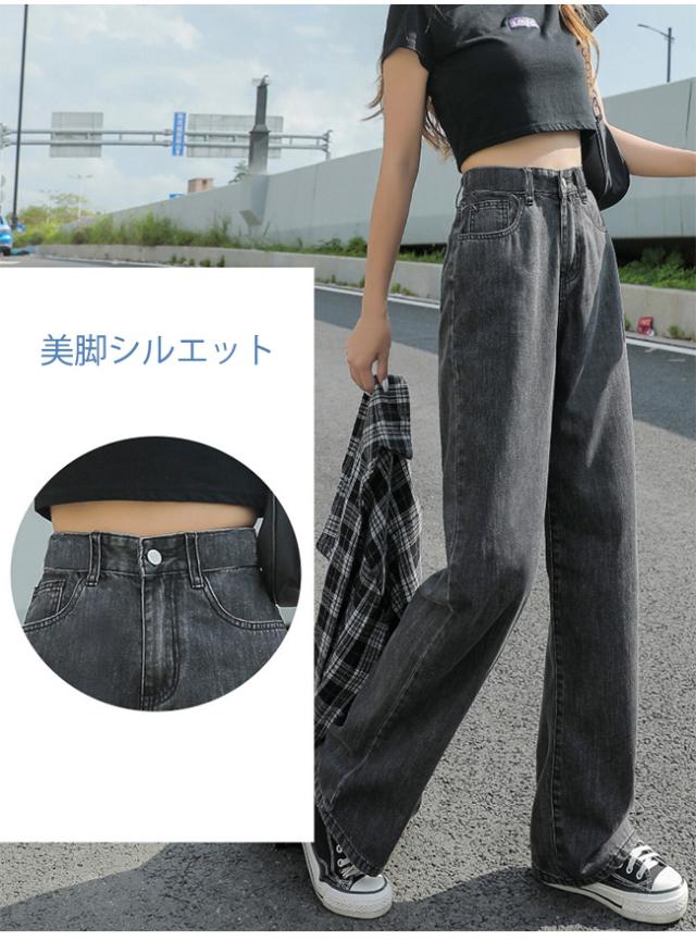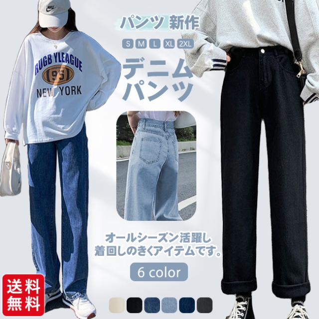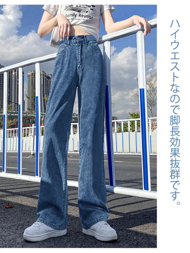 デニムパンツ レディース ジーンズ ズボン ボトムス ハイウエスト ロング丈 カシュアル 体型カバー ゆったり 美脚