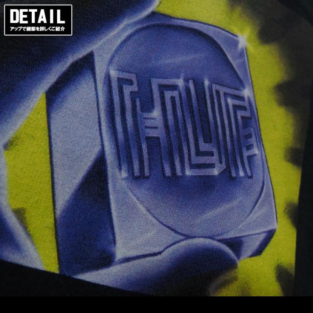 胸にプリントされた70's〜80'sに見られるヴィンテージのエアブラシアルバムカバーにインスパイアされた、HUFカスタムアートワークが特徴の一枚。