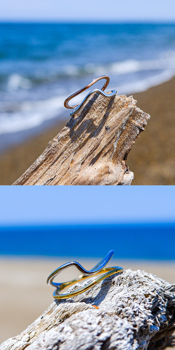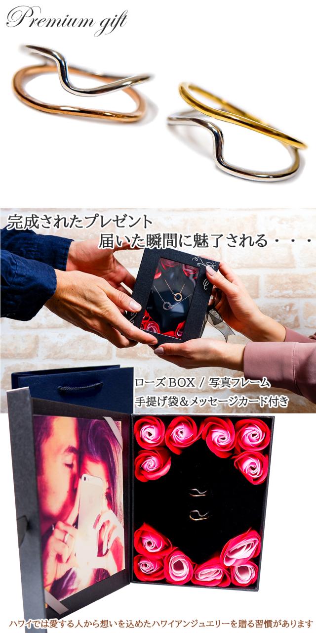 ペアリング ペアハワイアンジュエリー リング 指輪 2連風 ウェーブ K14 サージカルステンレス ステンレス 花 入浴剤 写真フレーム フラワー