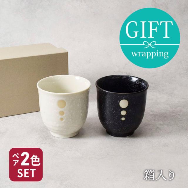 夫婦湯呑 箱入り 220cc 水玉 白×黒 湯呑み 湯飲み ゆのみ 湯のみ コップ カップ 茶器 食器 ドリンクウェア ギフト食器 ギフト 贈り物 プレゼント ペアセット 新生活 引っ越し祝い お祝い 箱入り ラッピング おしゃれ