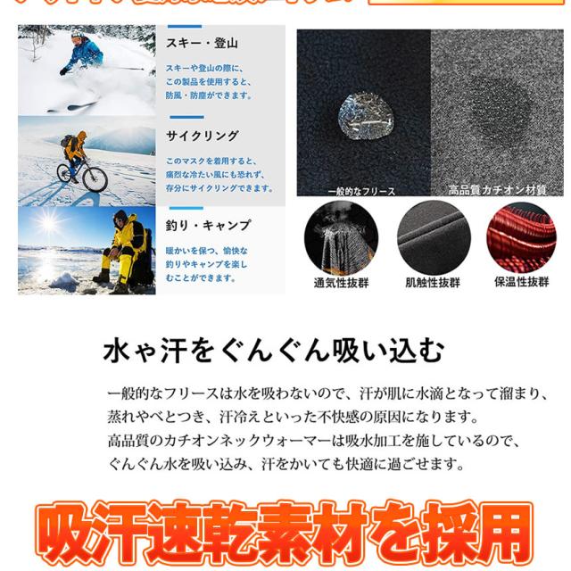 触り心地もいい、先気化熱を効率的に発生させ、保温を持続続けてくれる。汗をかいても素早く吸収して乾く、吸汗速乾素材を採用しています。防寒、防風、抗菌防臭機能付。