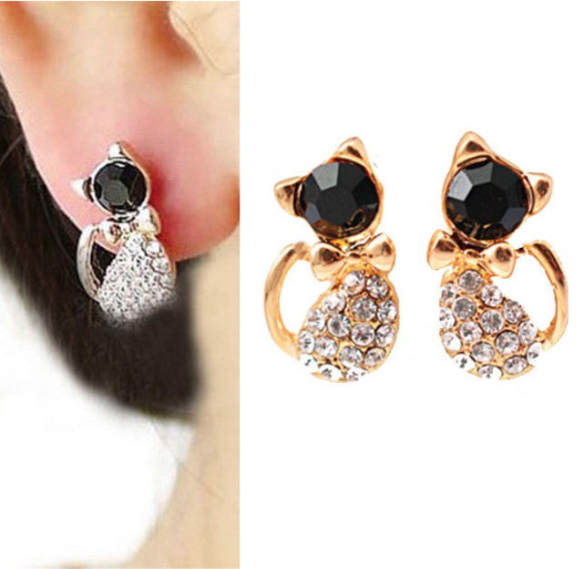 可愛い 猫 ねこ ピアス ★ レディース ジュエリー スワロフスキー ピアス 耳飾り イヤリング アクセサリー B07-4