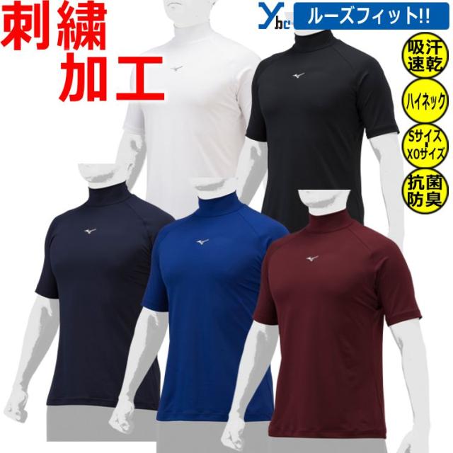 【刺繍サービス ハイネック 半袖】 ミズノ アンダーシャツ 半袖 刺繍 ドライ 吸汗速乾 ストレッチ 柔らかい 抗菌防臭 防汚加工 ルーズフィット 軽量 大人用 ゼロプラス 12JAAP31 mizuno ybc 2023 |