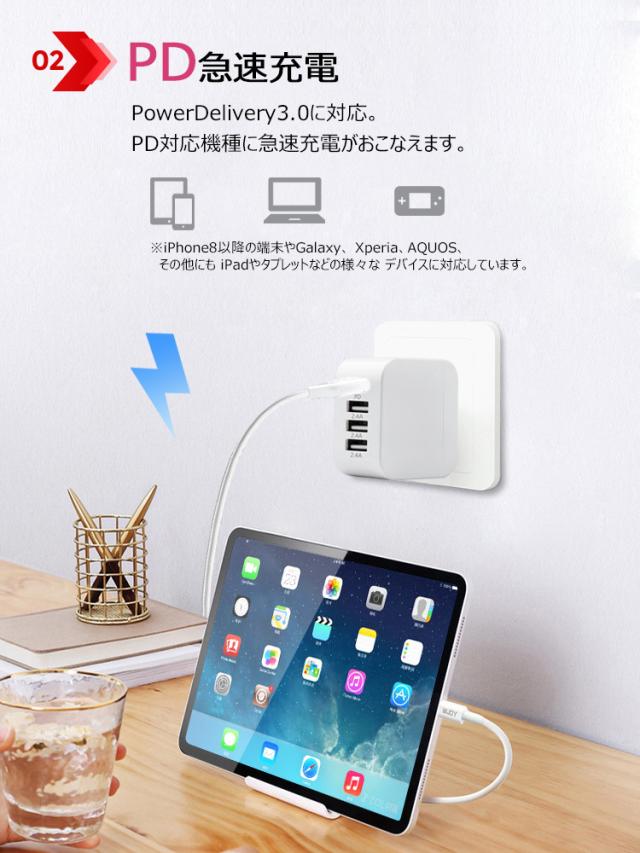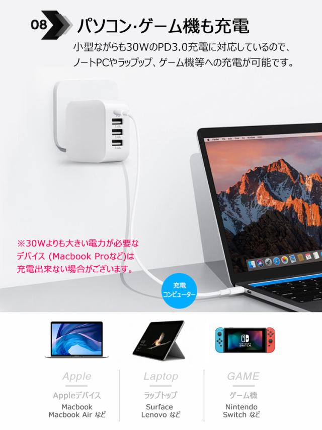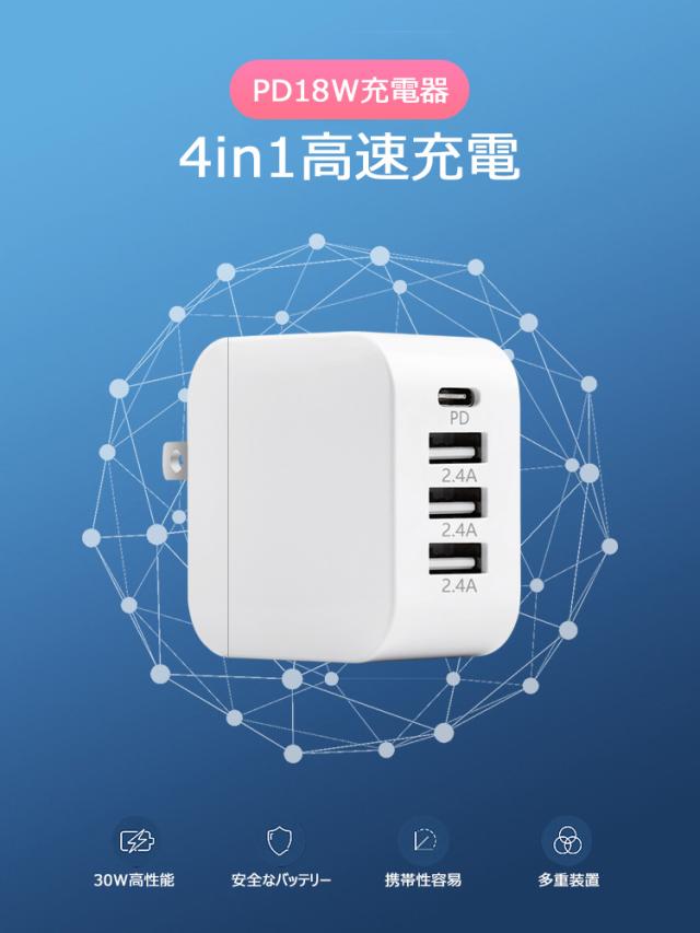 【春待ちセール開催中】 充電器 タイプc type c 充電器 iphoneスマホ充電器 急速充電器 30W PD+QC3.0 4ポート 高速充電 ACアダプター USBポート対応 アダプター スマート タブレット