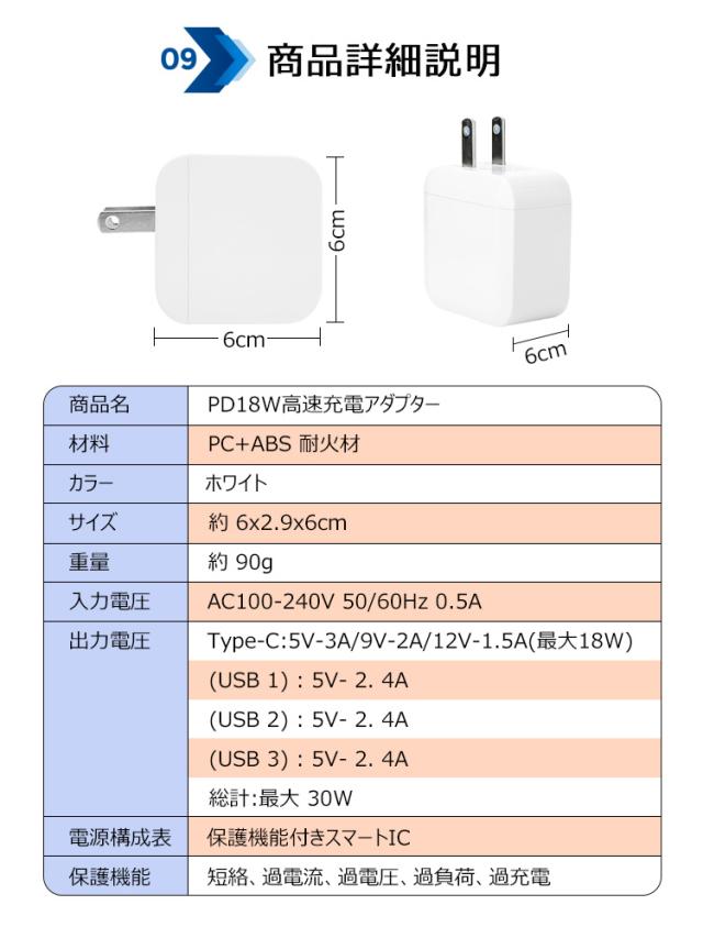 ■出力:Type-C:5V-3A/9V-2A/12V-1.5A(最大18W)