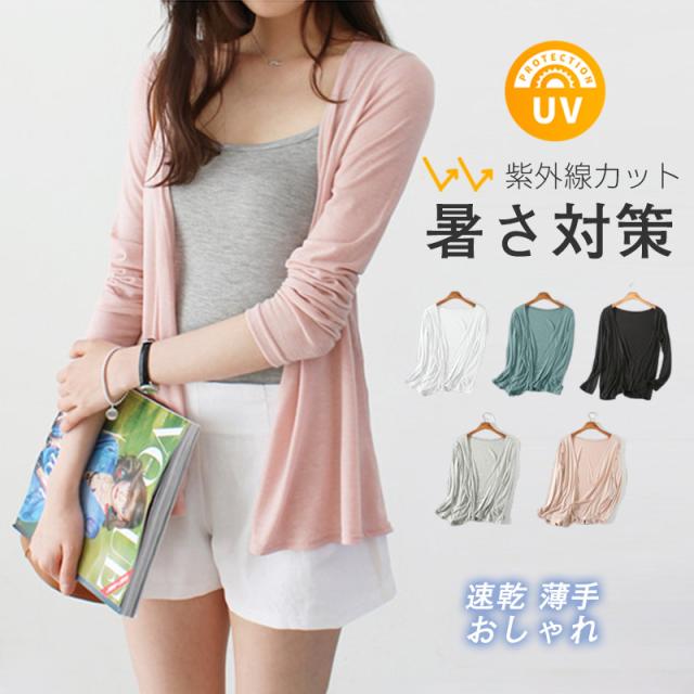 UVケア カーディガン UVカット トップス レディース 長袖 無地 羽織り 涼しい アウター コート 紫外線対策 日焼け止め お
