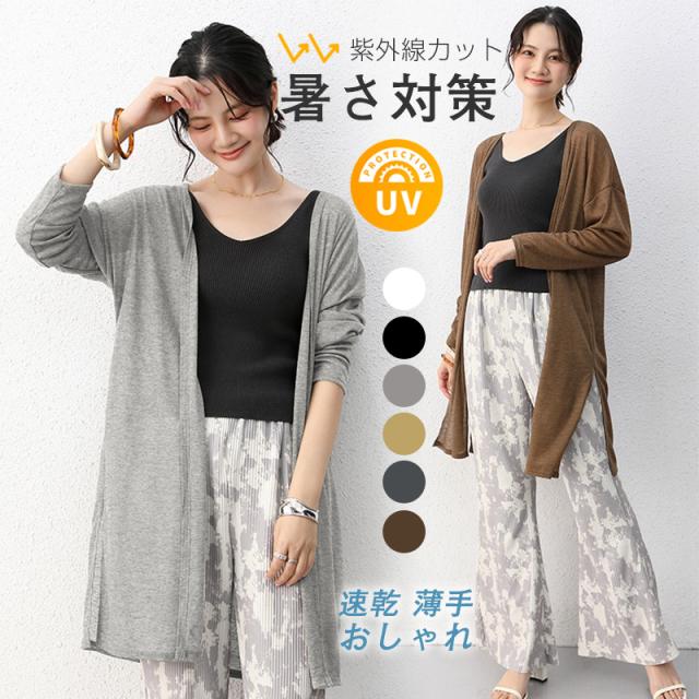 UVケア カーディガン UVカット トップス レディース ロング 無地 羽織り 涼しい アウター コート 紫外線対策 日焼け止め