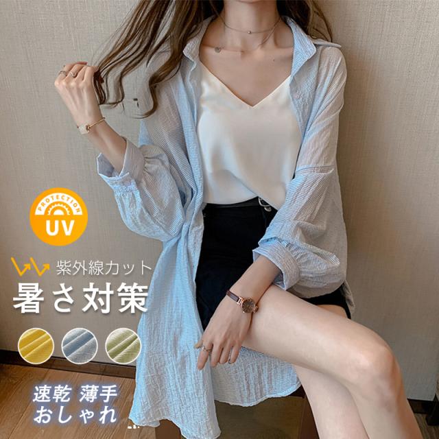 UVケア カーディガン UVカット トップス レディース ロング丈 無地 羽織り 涼しい シャツコート 紫外線対策 日焼け止め お