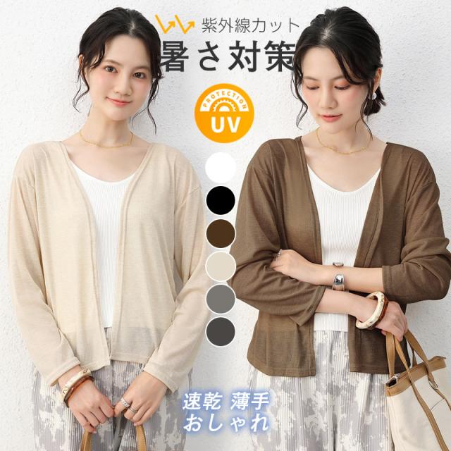 UVケア カーディガン UVカット トップス レディース 肌触り 無地 羽織り 涼しい アウター 長袖 紫外線対策 日焼け止め お