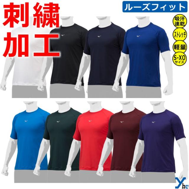 【刺繍サービス ローネック 半袖】 ミズノ アンダーシャツ 半袖 クルーネック 刺繍 ドライ 吸汗速乾 ストレッチ 柔らかい 抗菌防臭 防汚加工 ルーズフィット 軽量 大人用 ゼロプラス 12JAAP30 mizuno ybc 2023 |