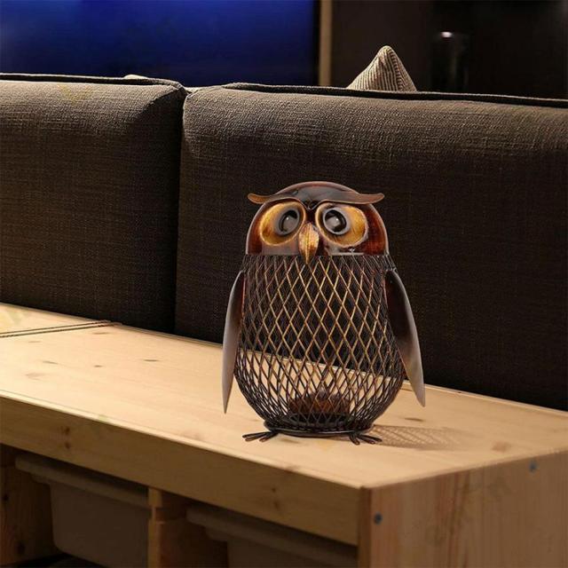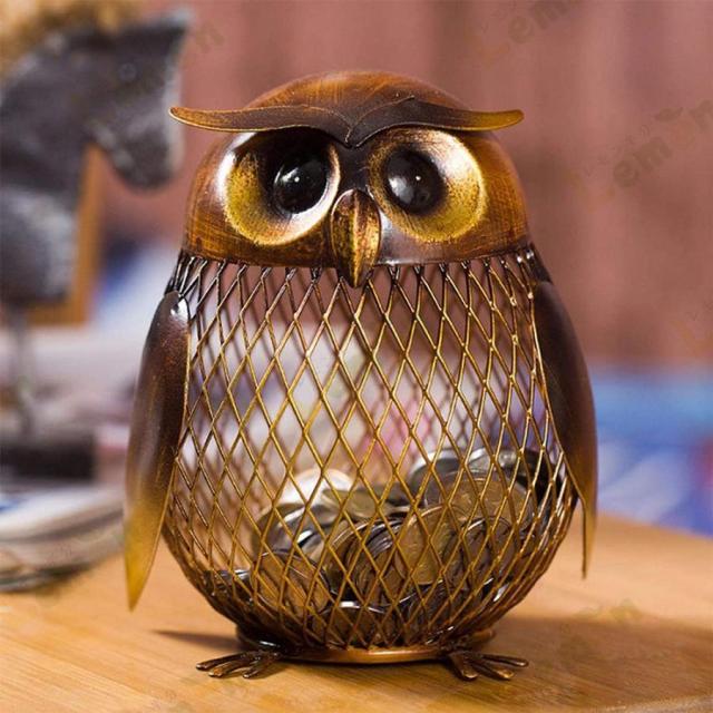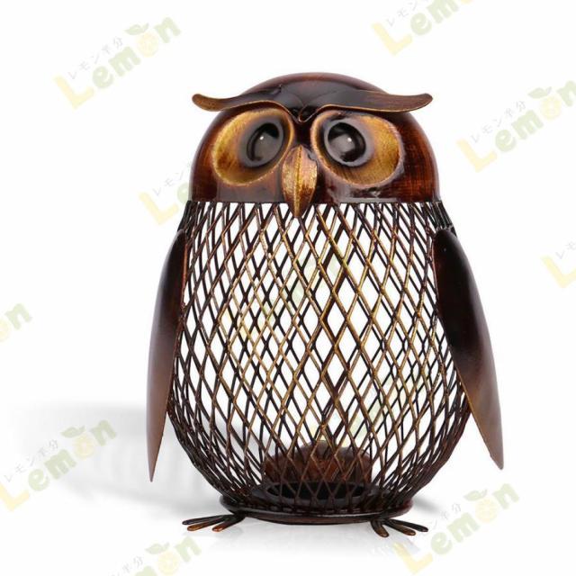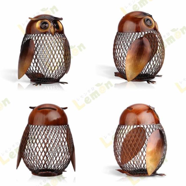 貯金箱 動物の置物 フクロウ風クラフトメタルコインボックス クリエイティブ 飾りウェディングギフト ご家庭の装飾に 鉄 置物