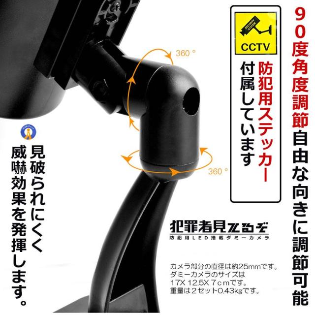 ダミー防犯カメラ 点滅 防犯 対策 安心 安全 ステッカー 最新仕様 監視 不審者 威嚇 角度調節 簡単設置 セキュリティ 自宅 360°回る 配線なし MITERUZO