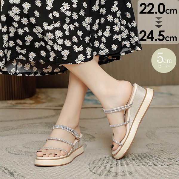 【レビュー投稿で+5%還元】サンダル 厚底 ウェッジソール サンダル キラキラ エレガンス 2way ミュール レディース ウェッジ ソール ヒール5 ウェッジソールサンダル 春夏 小さいサイズ 靴 甲高 幅広 美脚足長効果 厚底サンダル 22.0 22.5 23.0 23.5 24.0 24.5 ei026l9
