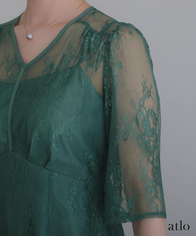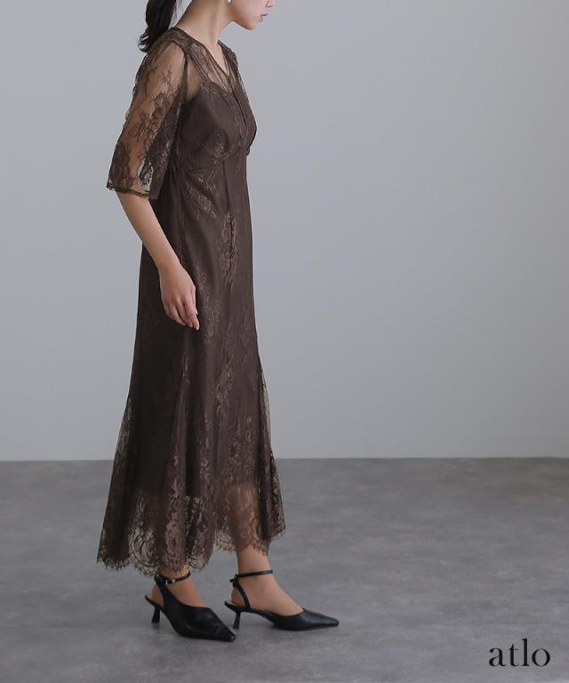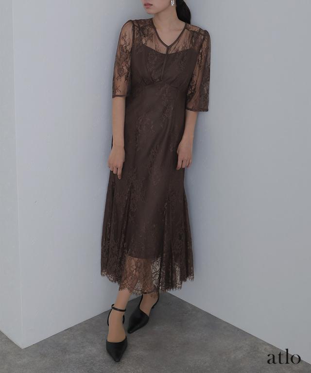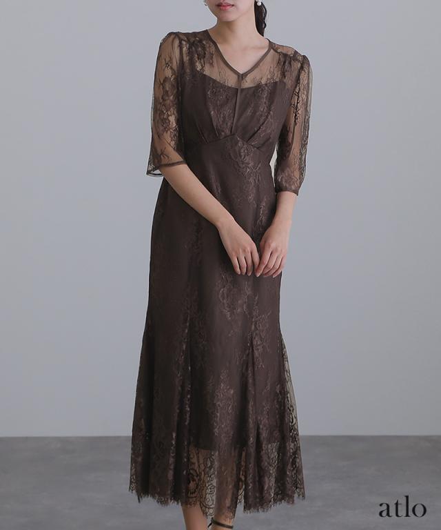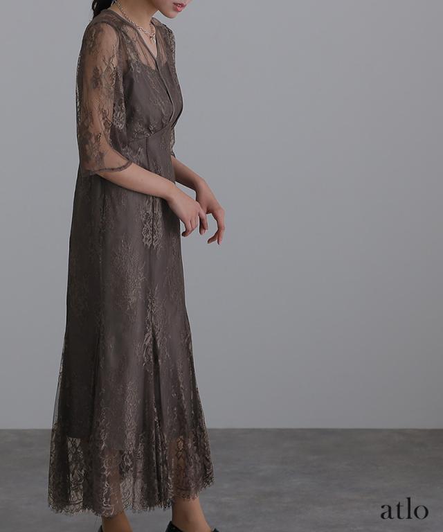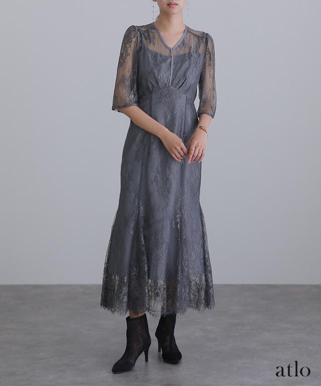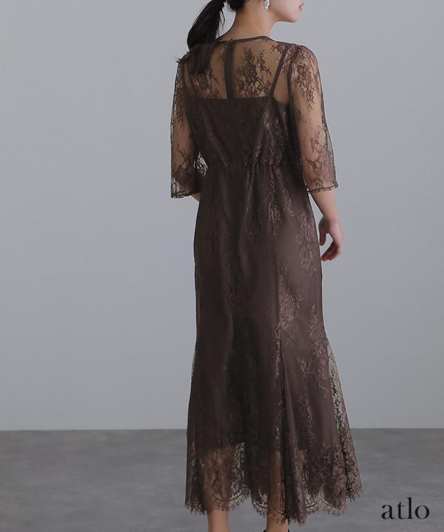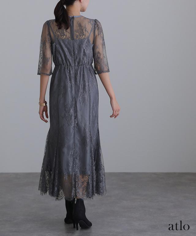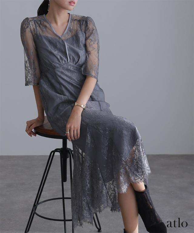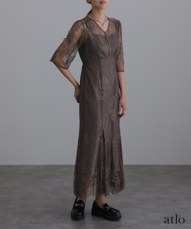 ニュアンスカラーがおしゃれな総レースワンピースです。