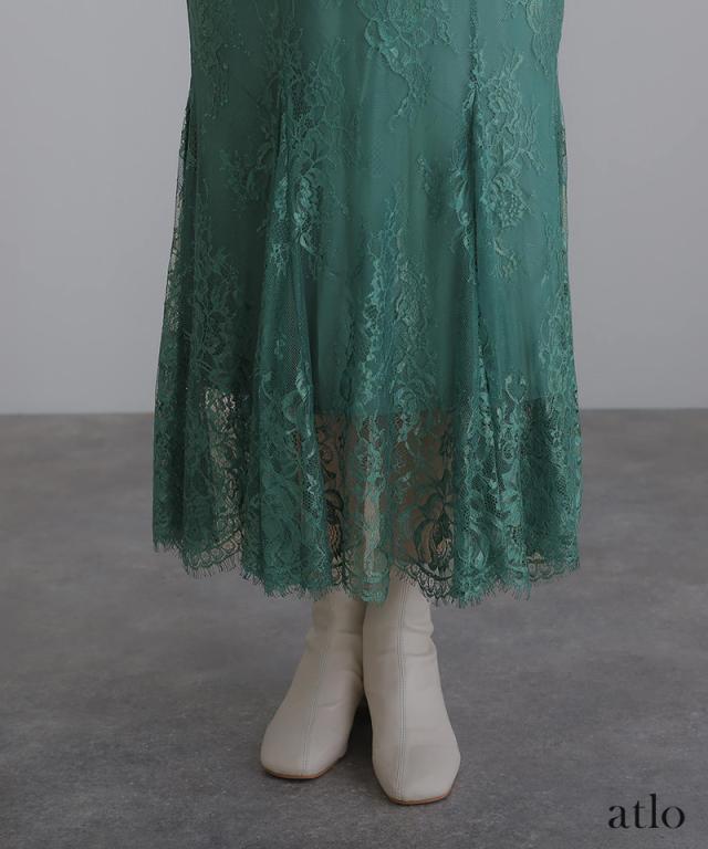総レーススカートは裾の揺れ感もきれいで、華やかさをプラスしてくれます。