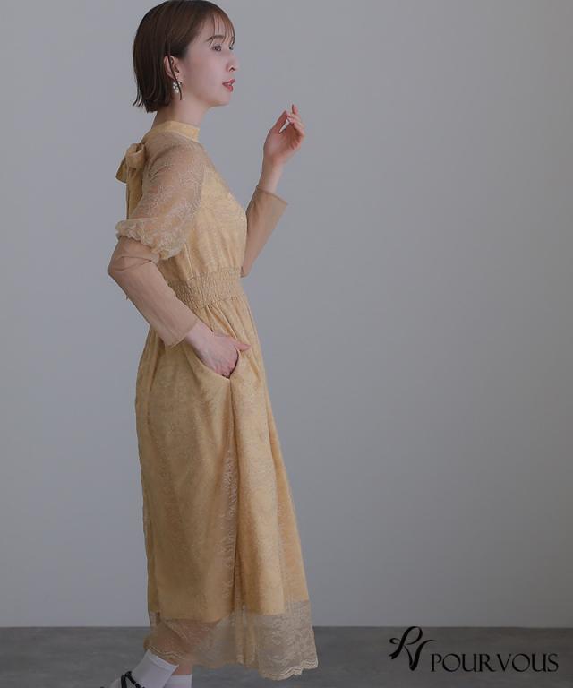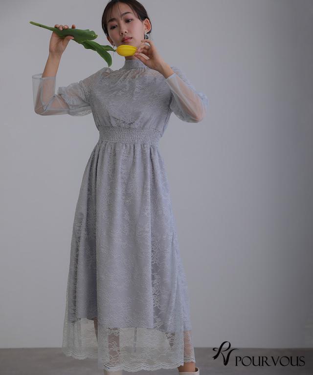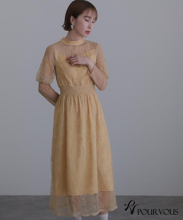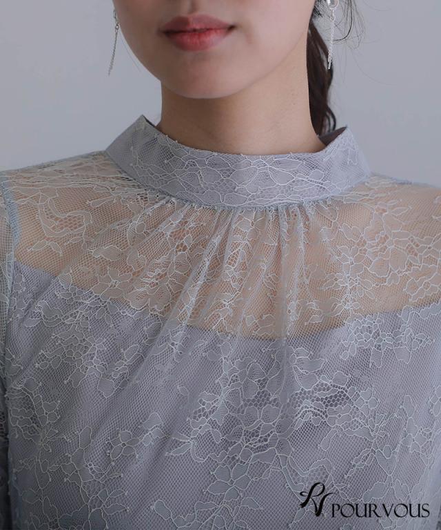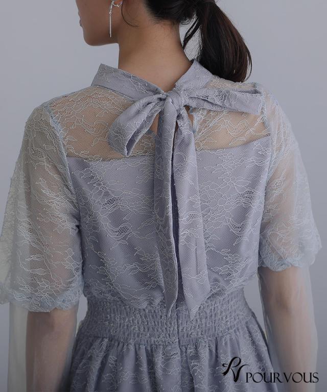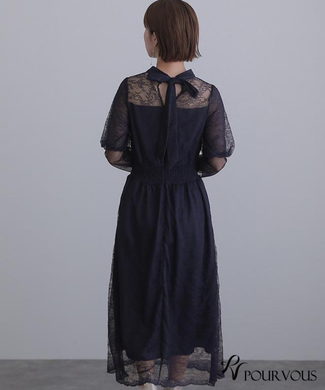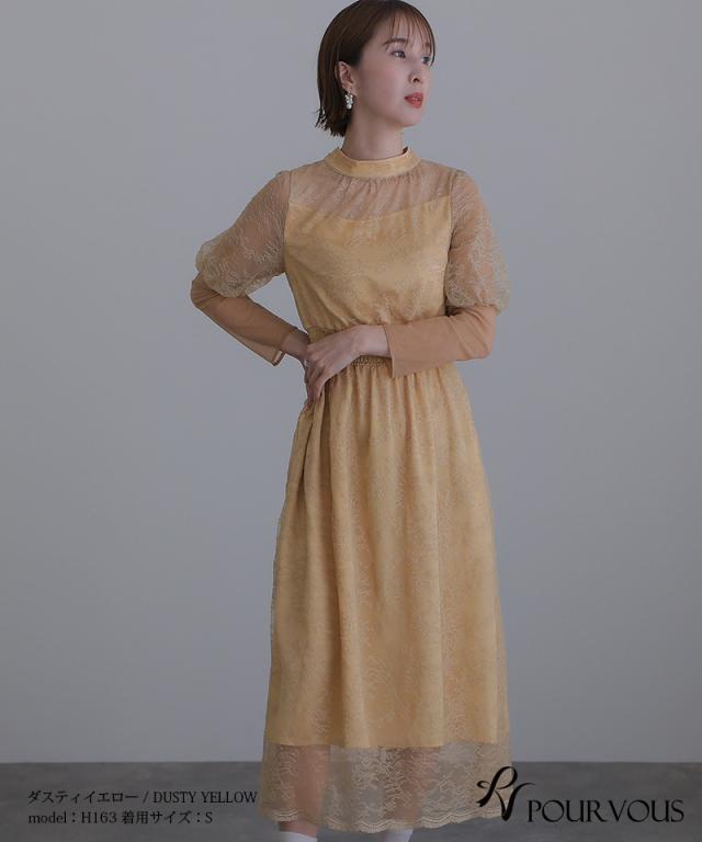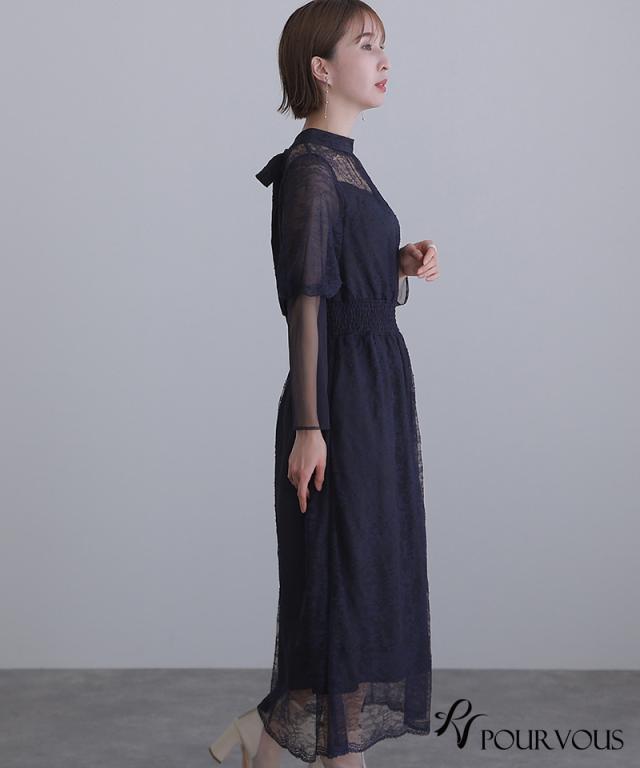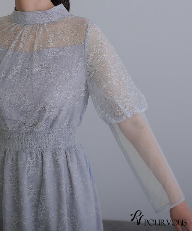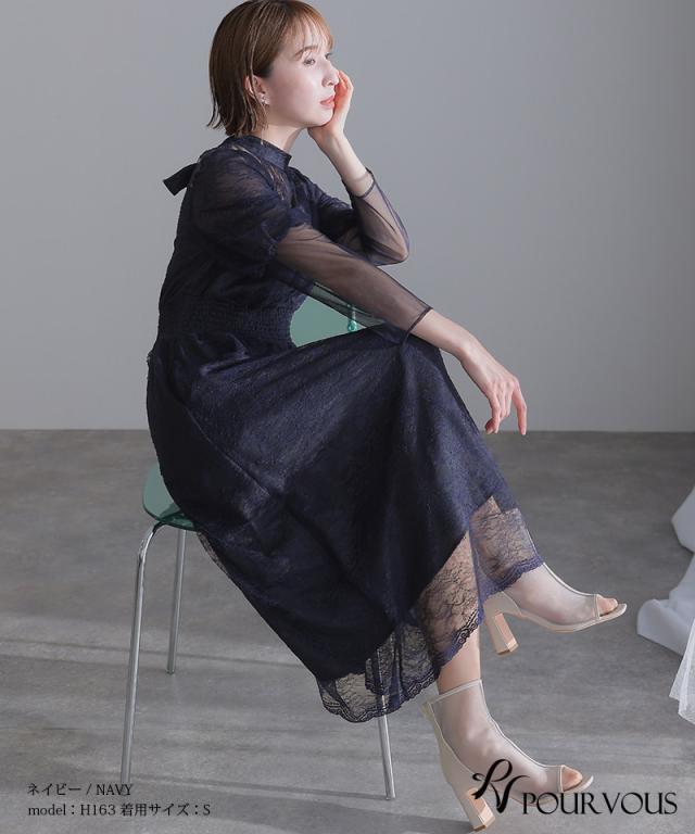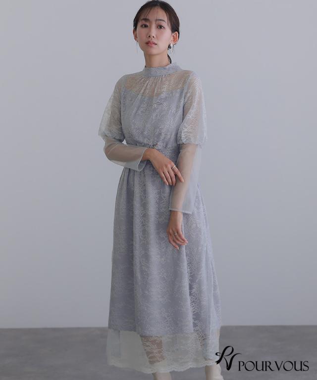 袖ラメオーガンジー切り替えレースワンピース【615231222】20代・30代・40代・54代長袖・膝丈・セットアップ・スカート・体型カバー・ジャケット・テーラード・スーツ・大きいサイズなど・即日発送・送料無料結婚式・婚活・披露宴・顔合わせ・二次会・同窓会・お呼ばれ・食事会・謝恩会・親族・七五三・お宮参り・冠婚葬祭・弔事・女子会・デート・入学式・卒業式・入園式・卒園式・ママ・マタニティー・セレモニー・セレブ・パーティー