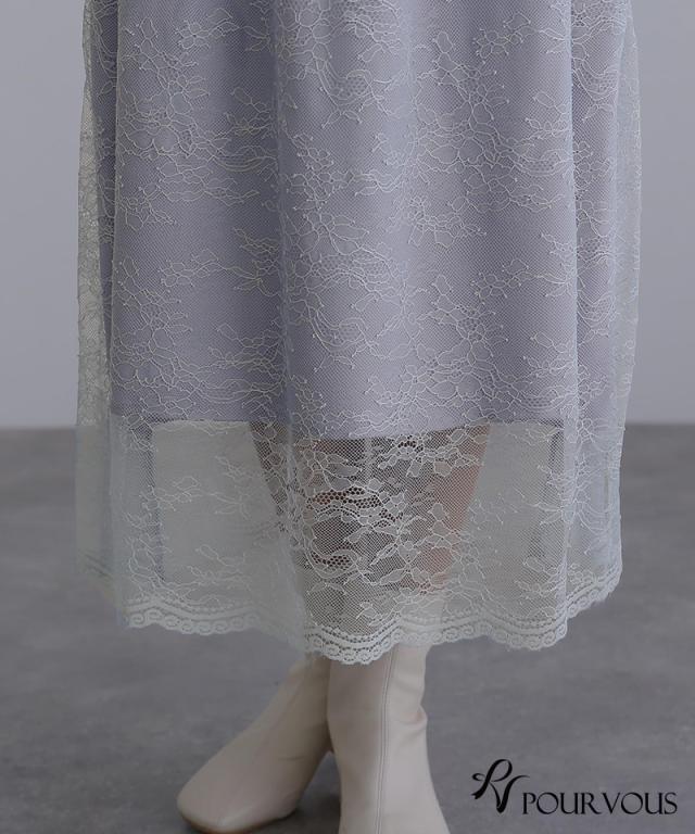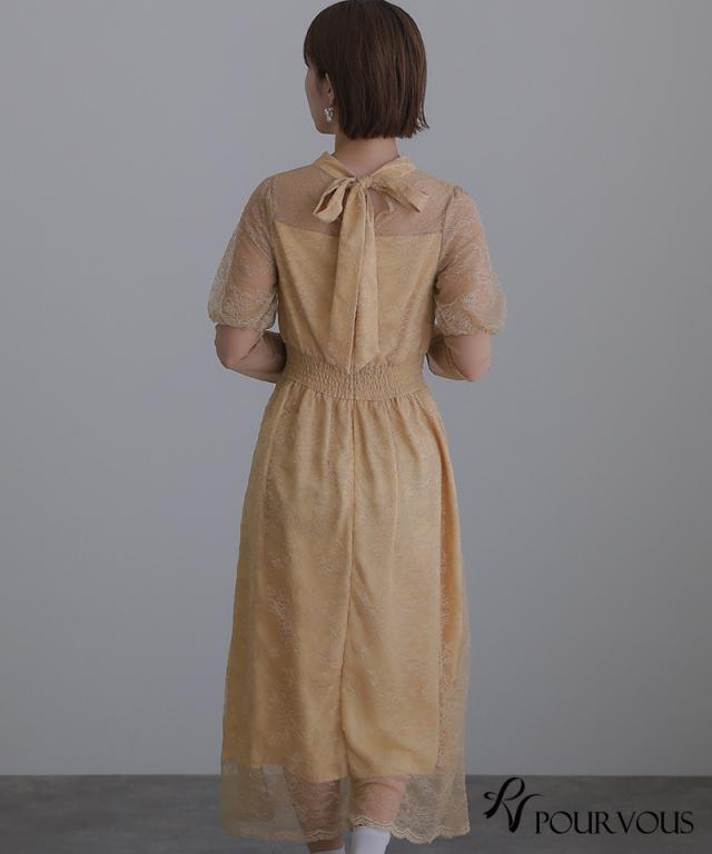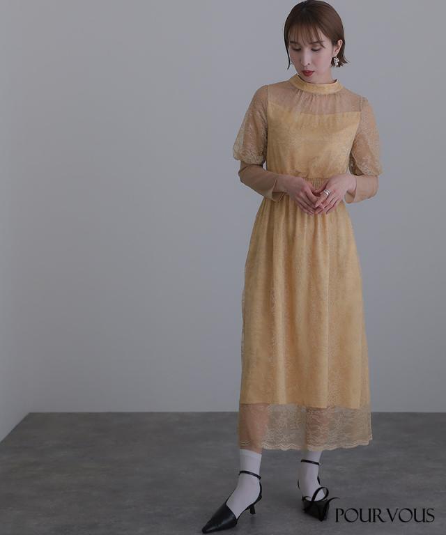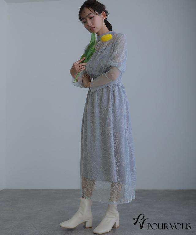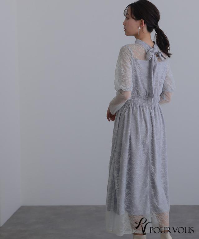 袖ラメオーガンジー切り替えレースワンピース/615231222