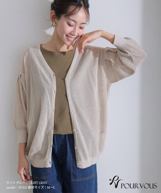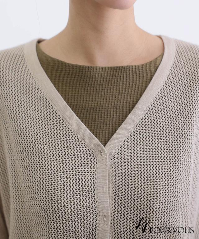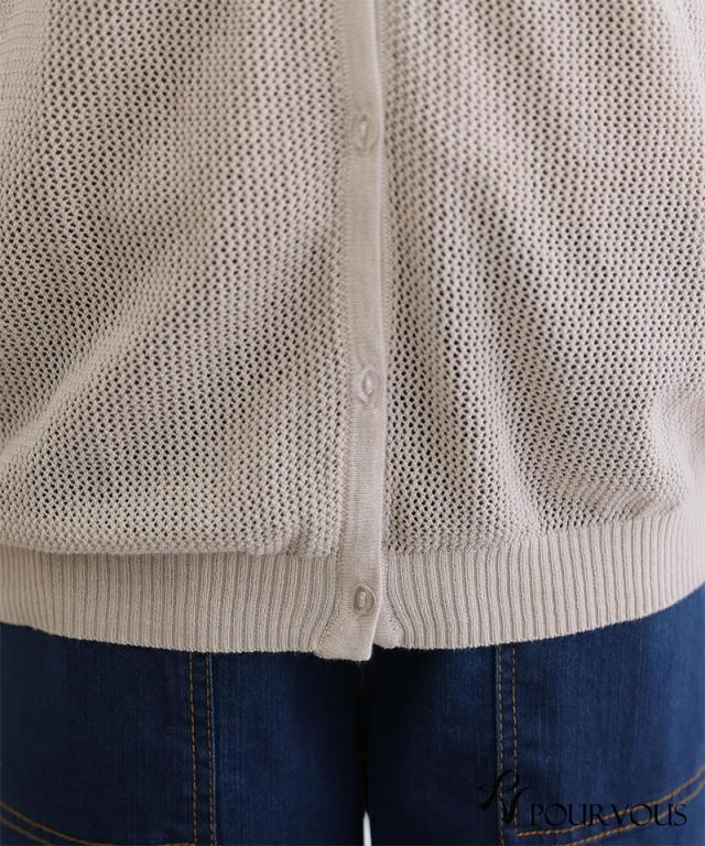 メッシュ編みVネックカーディガン【638231326】 20代・30代・40代・50代トップス・レディース・カジュアル・半袖・長袖・七分・ノースリーブ・肩出し・Vネック・シンプル・薄手・厚手・無地・刺繍・花柄・可愛い・伸縮性・キレイめ・着やせ・重ね着風・新作・レース・上品・セットアップ・ビジュー・体型カバー・スタイルアップ・小さいサイズ・3Lや11L・・即日発送・送料無料・オフィス・ワーク・オールシーズン・デイリー・普段着・オケージョン・セミフォーマル・婚活・顔合わせ・同窓会・お呼ばれ・食事会・謝恩会・親族・七五三・お宮参り・冠婚葬祭・弔事・女子会・デート・入学式・卒業式・入園式・ママ