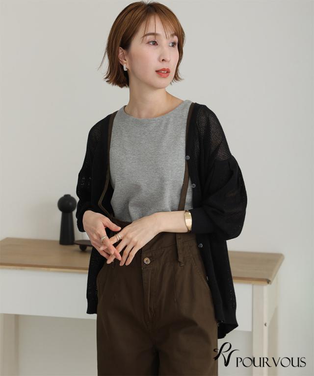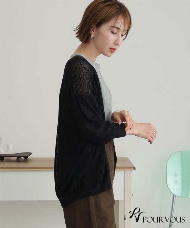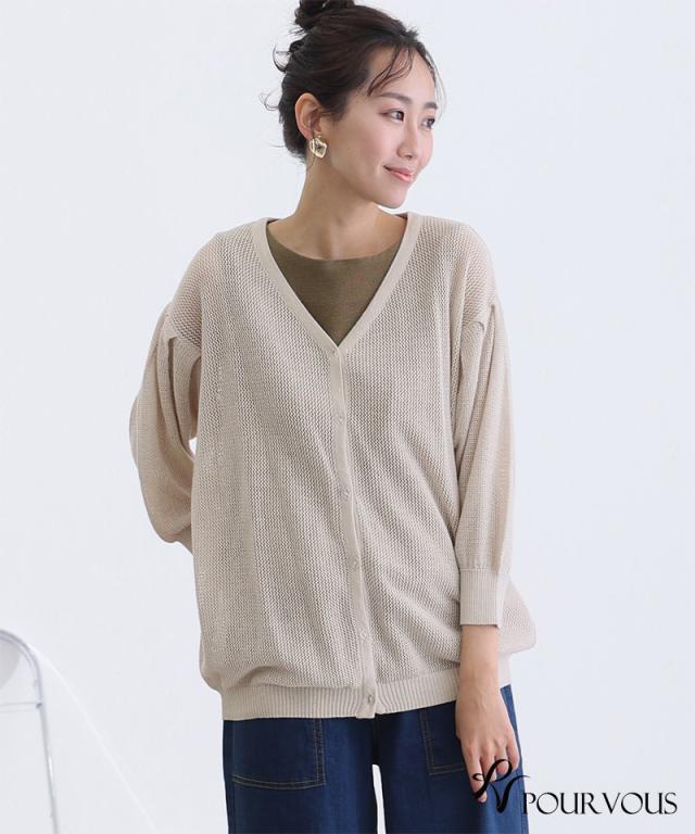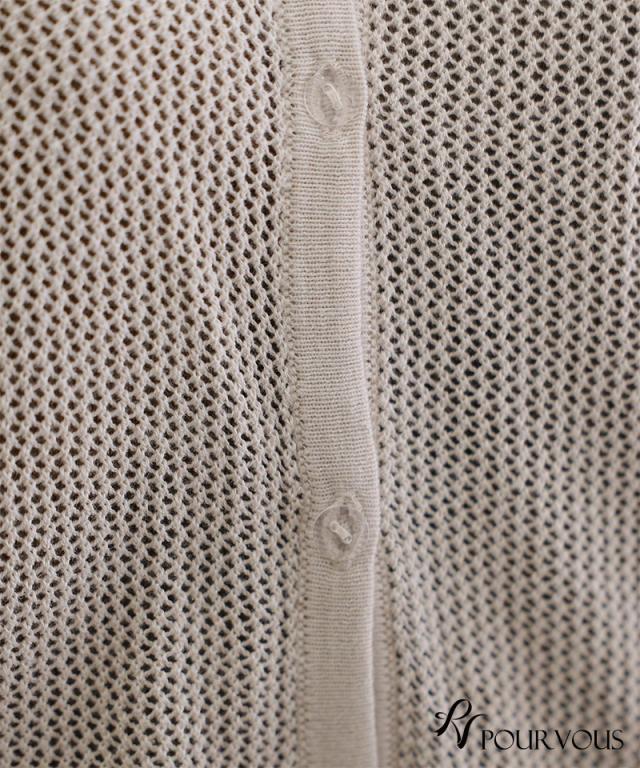 春〜夏の羽織にぴったりなメッシュ編みVネックカーディガン。