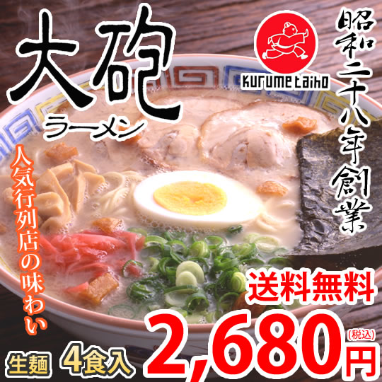 ラーメン 大砲ラーメン 4食 生麺 お取り寄せ 豚骨ラーメン 久留米ラーメン 福岡ラーメン ご当地ラーメン