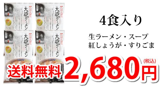 4食 640g(めん:110g×4、スープ:45g×4、紅しょうが:3g×4、すりごま:2g×4)