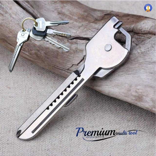 プレミアム 機能 鍵型ツール 6種 高機能 鍵と一緒に携帯 道具 ステンレス製 多機能 鍵型 ミニ マルチツール キーホルダー 栓抜き ナイフ ドライバー PREMITOOL