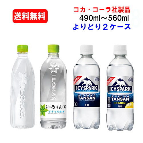 コカ・コーラ社商品 いろはす・無糖炭酸 490ml〜560ml PET×24本×(よりどり2ケース)/選り取り/炭酸水/お水/い・ろ・は・す