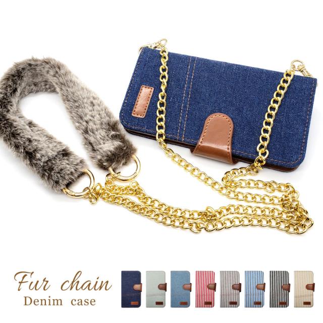 Android One S10 アンドロイドワンS10 スマホケース おしゃれ かわいい 手帳型ケース カバー デニム ファー チェーン 付き 手帳型ケース カバー おしゃれ 可愛い キラキラ シンプル