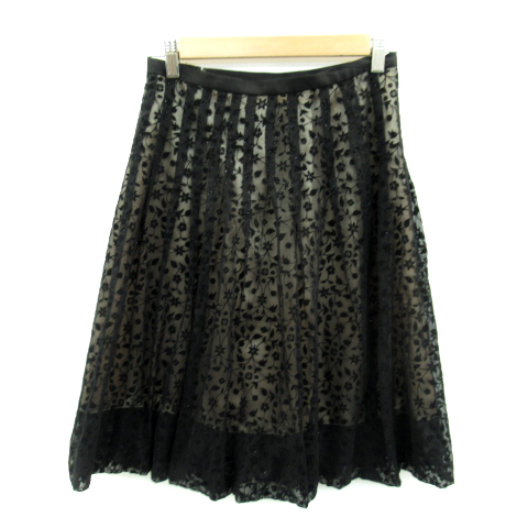 【中古】イギン ジブリーヌ バルーンスカート フレアスカート 花柄 フロッキープリント ラメ 9AR 黒 ■MO レディース